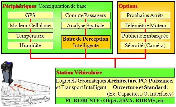 Le Centre de Décision à Référence Spatiale Embarqué (la Station Véhiculaire) analyse, en temps réel et directement dans l'autobus sans dépendance de la central ou de post-traitement dans celle-ci, l'information receuilli par l'ensemble du réseau de capteurs (incluant la perception des devises) dans l'autobus et connectés à la Station Véhiculaire:
